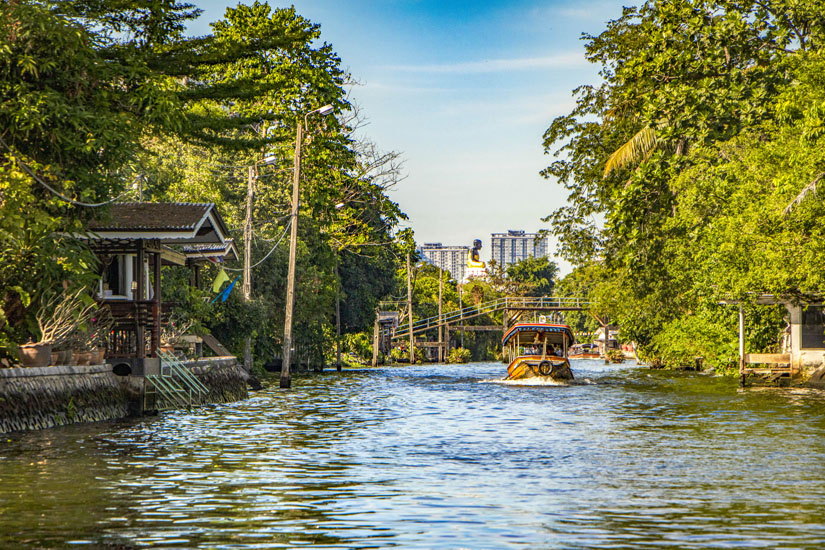 Bangkok war einst von vielen Kanälen durchzogen, den sogenannten Khlongs. Die meisten davon wurden für den modernen Straßenbau aufgeschüttet, doch noch immer finden sich etliche Khlongs, auf denen wie früher die Boote als Hauptverkehrsmittel benutzt werden.