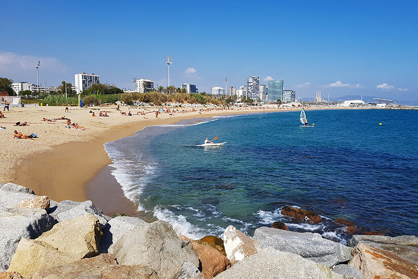 Die Playa de Bogatell ist vor allem für Sportbegeisterte und Familien geeignet. Hier gibt es zahlreiche exzellente Fischrestaurants und der Strand ist selten überlaufen. Die recht große Fläche zieht viele Jogger und Spaziergänger an und auf einigen Bereichen gibt es auch Beachvolleyballfelder. Im Süden dieses Strandes befindet sich das Wassersportzentrum Base Nautica, an dem ihr euch verschiedene Wassersportgeräte wie Surfbretter, Kayaks, Segelboote und vieles mehr ausleihen könnt.