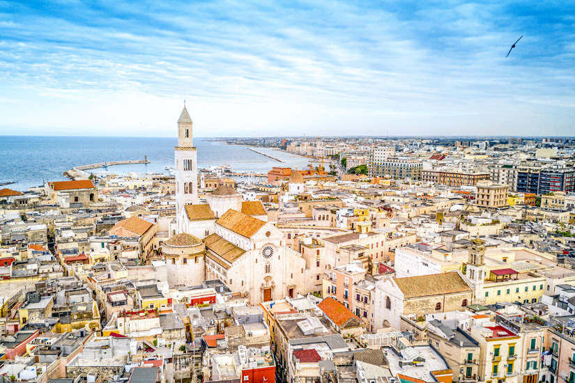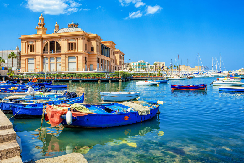 Die Hafenstadt Bari ist die charmante Hauptstadt der italienischen Region Apulien an der Adria. Dort kommen Reisende mit dem Kreuzfahrtschiff am Hafen oder dem Flugzeug auf dem stadteigenen Flughafen an, um sich unweigerlich von dem mediterranen Klima und dem lässigen Lebensgefühl anstecken zu lassen. Der Mix aus geschichtsträchtigen Bauwerken und modernen Shoppingmöglichkeiten zieht so manche Urlauber ins Herz von Apulien.
