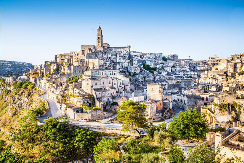 Das Aushängeschild der Region Basilikata ist die Kulturhauptstadt des Jahres 2019: Matera. Das seit 1993 zum Weltkulturerbe der UNESCO gehörende Juwel ist aufgrund der charakteristischen Höhlenbauten eine echte Besonderheit. Bis vor wenigen Jahrzehnten lebten die Menschen hier sogar noch ganz ohne fließendes Wasser und Strom. Heute kann jedoch mit modernen Annehmlichkeiten in einem historischen Umfeld gerechnet werden. Ein Streifzug durch die Stadt offenbart den Blick auf mittelalterliche, in Klippen eingebaute Felsenkirchen und die umrahmende Natur, die gern als Ausgangspunkt für Wanderungen genutzt wird.