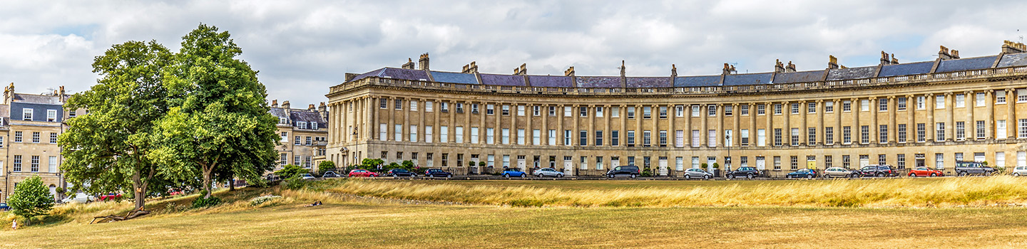 Baths bekannteste Straße stammt aus dem 18. Jahrhundert und liegt am Royal Victoria Park, einer grünen Oase der Stadt. The Royal Crescent vereint 30 Reihenhäuser aus dem 18. Jahrhundert, die charmant bogenförmig angeordnet sind. Den Auftakt der Erbauung machte „Haus Number 1“, das als Unterkunft für royale Besucher des Ortes fungierte. Noch immer ist es, jetzt als Museum, der Öffentlichkeit zugänglich. Die Häuserreihe ist denkmalgeschützt.