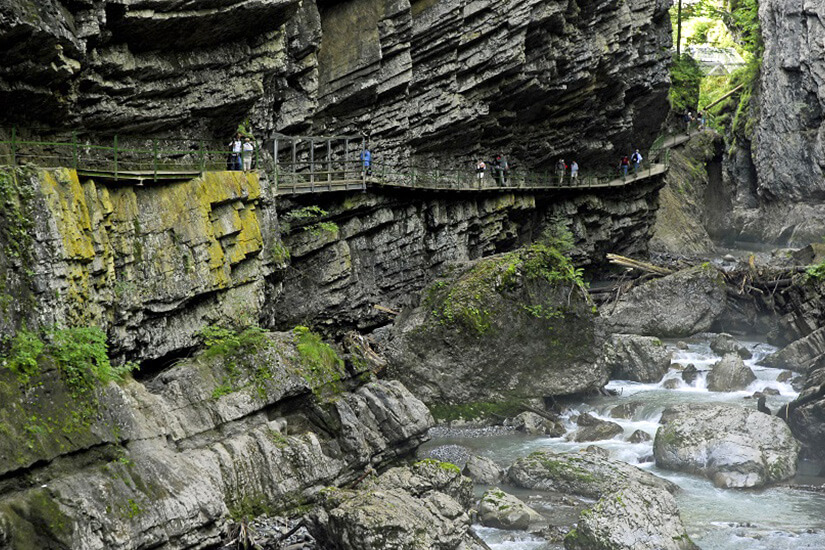 Gleich westlich vom in den Allgäuer Alpen gelegenen Oberstdorf könnt ihr eine Rundwanderung entlang der Breitachklamm unternehmen. Bei diesem wirklich spektakulären Weg geht ihr über den sogenannten Zwingsteg, unter euch das tosende Wasser des Breitachs und über euch die Klamm! Gerade in heißen Sommern ist ein Gang durch die Schlucht sehr erfrischend, ist es hier doch schattig und feucht. Nach diesem aufregenden Einstieg in die Wanderung geht es hinauf auf den Engenkopf und danach entlang von Blumenwiesen. Die 3,7 km lange Strecke ist aufgrund guter Wege auch bei Nässe kein Problem. Der Eintrittspreis für die Breitachklamm beträgt 4,50 Euro für Erwachsene (ab 16 Jahre) und 1,50 Euro für Kinder (5 bis 15 Jahre).