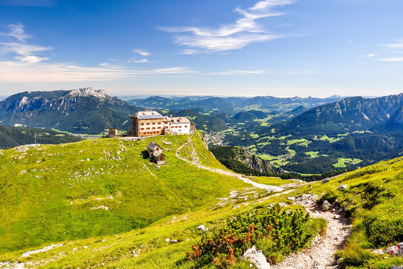 Anspruchsvoller als die beiden vorgenannten Wanderungen ist der Weg zum Watzmannhaus auf dem Watzmann in den Berchtesgadener Alpen. Beginnt ihr die Tour am Parkplatz Hammerstiel, liegen eine 7,6 km lange Strecke und 1.150 Höhenmeter vor euch. Anfangs geht ihr einen breiten Weg mit mäßiger Steigung entlang. Ab der Mitterkasseralm verengt sich der Weg, nach der Forschungsstation des Nationalparks Berchtesgaden geht er in einen schmalen Bergsteig über. Ab dann ist Kondition gefragt und es geht über Serpentinen und Grashänge weiter hinauf, bis schließlich auf 1.930 m das Falzköpfl mit dem Watzmannhaus steht. Übrigens: Auch Caspar David Friedrich war von dem 2.713 m hohen Watzmann so beeindruckt, dass er ein Bild von ihm malte. Nach der Zugspitze ist der Watzmann der zweithöchste Berg Deutschlands.