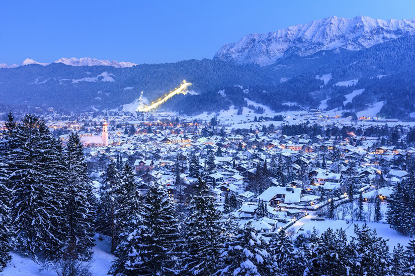 Im Wintersportmekka Garmisch-Partenkirchen stehen euch zwei Skigebiete zur Verfügung. Garmisch-Classic mit 73 km und das Skigebiet Zugspitze. Die Langlaufloipen werden täglich gespurt. Drei Rodelstrecken sorgen für Spaß bei Eltern und Kindern. Auf mehr als 110 km könnt ihr durch den Schnee wandern. Sportliche Fahrer können in Garmisch-Patenkirchen 7 km am Stück 1.800 Höhenmeter hinter sich lassen. Dabei beträgt das Gefälle bis zu 92 %! Wollt ihr auf die Zugspitze fahren, kostet euch das Hin- und Rückfahrtticket 58 Euro, wenn ihr über 18 Jahre alt seid. 16 bis 18 Jahre alte Jugendliche zahlen 43 Euro, von Kindern im Alter von 5 bis 16 Jahren werden 32 Euro verlangt. Oben ankommen, könnt ihr von der Aussichtsplattform den Blick über die Umgebung schweifen lassen und bei Bedarf noch ins Gipfelrestaurant Panorama 2962 gehen. Ein Ausflug auf die Zugspitze lohnt sich natürlich auch im Sommer.