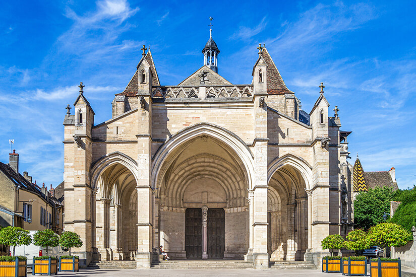 Das majestätische Gotteshaus erhebt sich im Herzen der Altstadt und ist ein beeindruckendes Beispiel der burgundischen Romanik mit gotischen Elementen. Erbaut zwischen dem zwölften und 15. Jahrhundert, beeindruckt es mit ihrer harmonischen Fassade und dem eleganten Glockenturm, der über die Dächer der Stadt hinausragt. Schon von außen fällt der reiche skulpturale Schmuck auf, besonders das imposante Portal.
