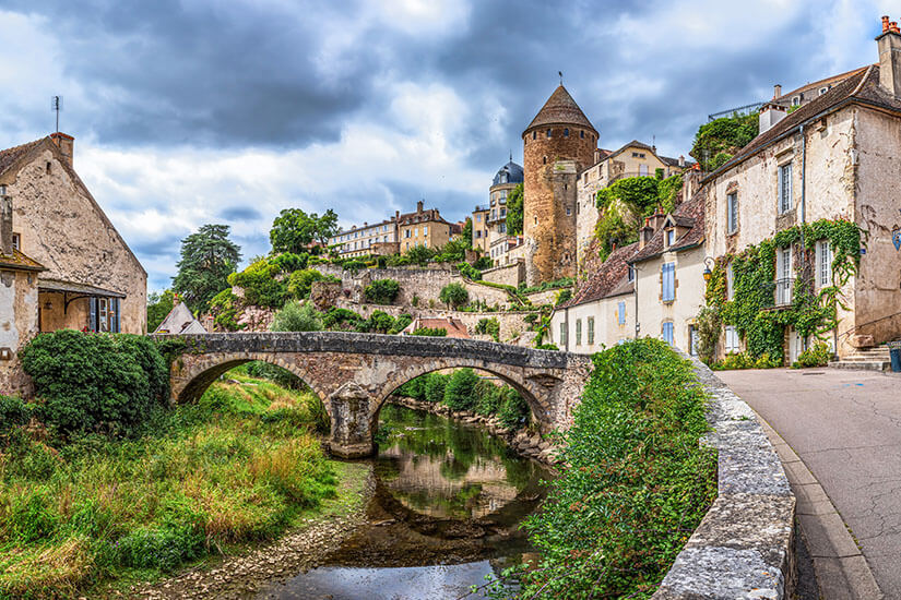 Etwa 50 Kilometer nordwestlich von Beaune erwartet euch mit Semur-en-Auxois eines der schönsten mittelalterlichen Städtchen Frankreichs. Wie aus einem Märchenbuch entsprungen, thront der Ort auf einer Granitschleife, die vom Fluss Armançon fast vollständig umflossen wird. Das Panorama wird dominiert von vier mächtigen Türmen und imposanten Befestigungsmauern aus dem 13. Jahrhundert. Schlendert durch die altehrwürdigen Gassen mit ihren gut erhaltenen Fachwerkhäusern und entdeckt architektonische Schätze wie die gotische Stiftskirche Notre-Dame mit ihren beeindruckenden Glasfenstern. Ein Spaziergang entlang der Stadtmauern bietet spektakuläre Ausblicke auf die Häuser mit ihren roten Ziegeldächern und den sich durch die grüne Landschaft schlängelnden Fluss.