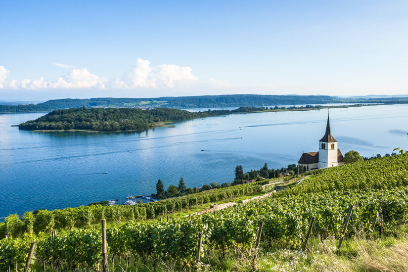 Die Halbinsel heißt auf Französisch Île Saint-Pierre. Sie liegt im Südwesten des Bielersees bei Erlach und ist seit der zweiten Hälfte des 19. Jahrhunderts durch eine Landzunge mit dem Festland verbunden, die am Hafen von Erlach unterbrochen ist. Die St. Peterinsel ist der Lebensraum vieler Vogelarten und steht teilweise unter Naturschutz. Um zur Halbinsel zu gelangen, nehmt ihr von Biel aus ein Kursschiff. Es fährt am Nordufer des Sees entlang, das von urigen Winzerdörfern umgeben ist.