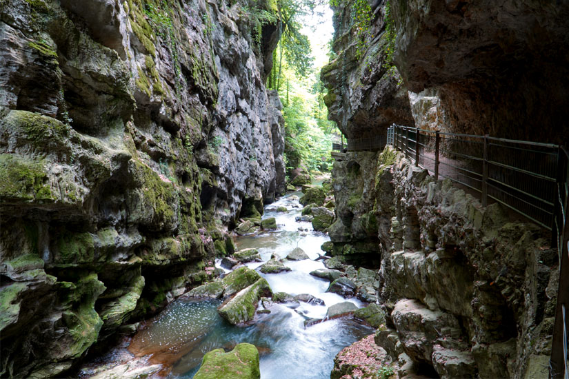 Die Bieler Taubenlochschlucht erstreckt sich über eine Länge von rund drei Kilometern von Bözingen nach Frinvillier. Sie steht seit dem Jahr 1927 zum Teil unter Naturschutz. Am tiefsten Punkt der Schlucht fließt die Schüss während ihr über Stege und Felsen entlang von Höhlen wandert. Der Name geht auf die junge Liebe des Müller von Bönzigen zurück. Ein Mädchen, das die kleine Turteltaube genannt wurde, stürzte sich in die Schlucht, nachdem ihr Bräutigam Müller am Tag ihrer gemeinsamen Hochzeit vom Ritter Ingelram von der Burg Rondchâtel umgebracht wurde. Sicherlich werdet ihr die mystische Stimmung spüren!