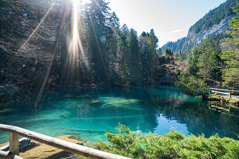 Der Blausee im schweizerischen Kandergrund gehört definitiv zu einem der schönsten Bergseen des Alpenlandes. Inmitten eines idyllischen Naturparks fasziniert er nicht nur mit glasklarem, türkisblauem Wasser, sondern ebenso mit einer mystischen Aura. So lädt der Blausee euch auf eine entspannte und genussvolle Zeit ein, die ihr mit langen Spaziergängen, einem romantischen Picknick am Wasser oder einer ruhigen Bootsfahrt verbringen könnt.