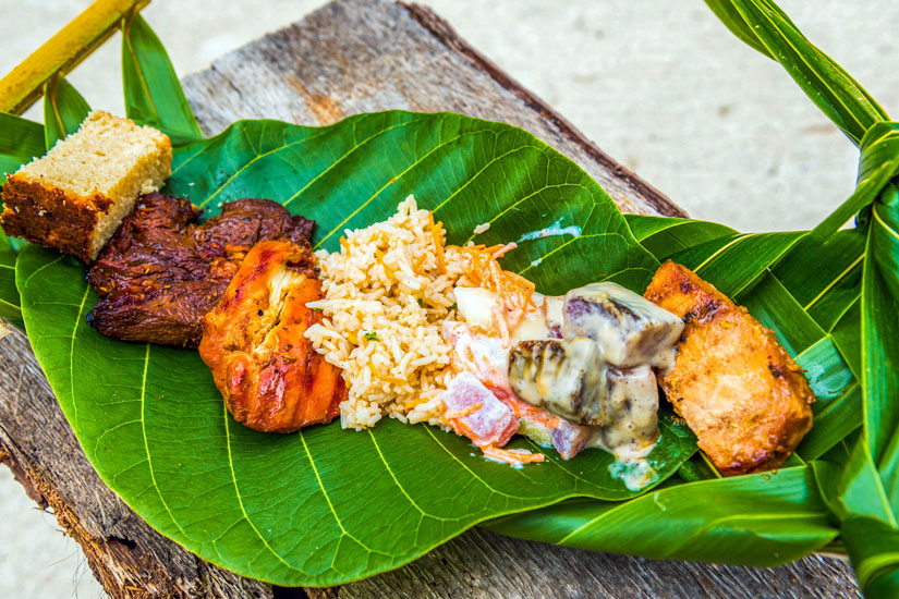 Der Artenreichtum des Südpazifiks lässt schon erahnen, dass Fisch- und Meeresfruchtgerichte auf der Insel sehr beliebt sind. Dabei wird häufig roher Fisch – der Poisson Cru – serviert, der mit Kokosmilch und Limettensaft abgerundet wird. Gegrillter oder gedünsteter Thunfisch mit Gewürzen, Essig und Tabasco ist ebenfalls eine der kulinarischen Spezialitäten der Insel. Weiterhin findet ihr Schwertfisch, Mahi-Mahi und Papageienfisch auf nahezu jeder Speisekarte. Die beliebtesten Beilagen sind dabei Yam- oder Tarowurzeln sowie die Brotfrucht. Die süßen Nachspeisen werden meist mit der berühmten Tahiti-Vanille abgerundet – beispielsweise der leckere Poe-Pudding aus Taro-Knolle, Papaya, Kürbis und Vanille.