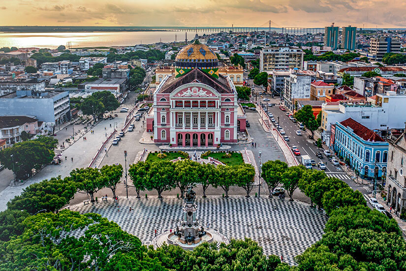 Er liegt im Norden und bildet den größten Bundesstaat Brasiliens. Der Amazonas-Regenwald deckt 99 Prozent des Gebietes ab und wurde so zum Namensgeber. Insgesamt 65 indigene Gruppen führen hier ein ursprüngliches Leben. Die Bevölkerungszahl des Staates beläuft sich auf rund 3,8 Millionen Menschen. Abseits der indigenen Gemeinschaften wohnen die meisten Personen in der Hauptstadt Manaus, die am Ufer des Rio Negros liegt. Schon hier erlebt ihr ein spannendes Farbspektakel: In der Stadt treffen der dunkle Rio Negro sowie der bräunliche Rio Solimões aufeinander, was auch als das „Treffen der Wasser“ bezeichnet wird. Seid ihr in Manaus, seht ihr unter anderem die Arena da Amazônia, welche für die Fußball-WM 2014 errichtet wurde, und das Opernhaus Teatro Amazonas.