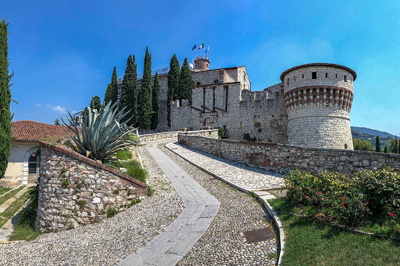 Hoch oben über Brescia dominiert eine prächtige Festung das Bild. Diese befindet sich dort, wo einst der Stadtkern war: auf dem Hügel “Cidneo”. Das Kastell stammt überwiegend aus dem Mittelalter, hat aber auch venezianische Türme. Es beherbergt zwei Museen und ist Austragungsort diverser Veranstaltungen. Einmal da, darf auch der ausgiebige Blick über Brescia nicht ausbleiben, denn die Aussicht ist wirklich beeindruckend! Die erste öffentlich zugängliche Sternwarte von Italien befindet sich auf dem Burgareal.