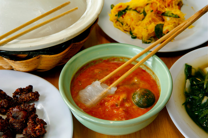 Die Küche Bruneis wird von zahlreichen Einflüssen bestimmt; vor allem treffen hier jedoch malaiische, indische, chinesische und arabische Speisen aufeinander. Diese fallen vor allem durch ihre scharfe Würze auf. Wollt ihr einmal ganz traditionell essen gehen, landen vor allem Fleisch oder Fisch mit Reis und Gemüse auf eurem Teller – beispielsweise Rindfleisch mit Kartoffeln (Daging Masak Lada Hitam), Garnelen mit Chili und Kokosmilch (Udang Sambal Serai Bersantan) oder Huhn mit Knoblauch (Serondeng Pandag). Dabei werden die Speisen häufig mit Chili, Curry, Kurkuma und Kokosmilch angereichert. Das Nationalgericht heißt Ambuyat, wobei es sich um weiterverarbeitetes Mark der Sargopalme handelt, das geschmacksneutral ist und zum Verzehr in unterschiedliche Fischsuppen getunkt wird.