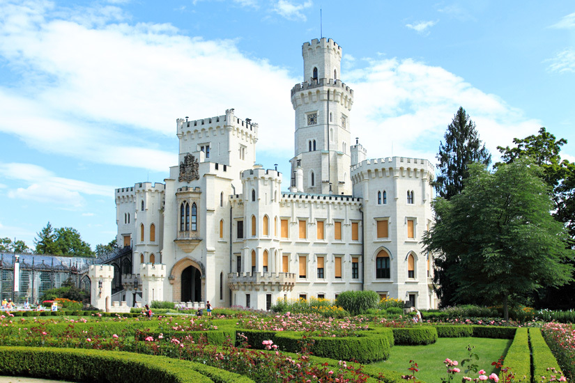 Wer ein bisschen Zeit für einen kleinen Ausflug außerhalb der Stadt mitgebracht hat, dem sei das Schloss Hluboká nad Vltavou (zu Deutsch Schloss Frauenberg) in der gleichnamigen Gemeinde nördlich von Budweis ans Herz gelegt. Dieses schöne, strahlend weiße Schloss steht anderen berühmten Schlössern Europas in puncto Ästhetik in Nichts nach. Im 13. Jahrhundert entstand zunächst eine frühgotische Burg, später dann ein Renaissanceschloss und Anfang des 18. Jahrhunderts bekam das Anwesen ein barockes Antlitz. Im Zuge der Burgenrenaissance wurde 1871 das heutige malerische Schloss im Tudorgotikstil errichtet.