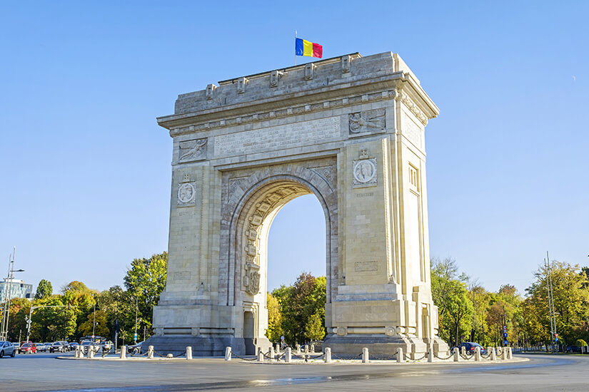 Im Jahr 1935 ließ die Stadt einen Triumphbogen erbauen, der dem Arc de Triomphe, einem der wichtigsten Sehenswürdigkeiten in Paris, nachempfunden wurde, jedoch kleiner als das Original ist. Doch auch der Triumphbogen von Bukarest hat eine historische Bedeutung, nämlich die Wiedervereinigung des Landes im Jahr 1918. An den Seiten des Bauwerkes seht ihr daher Abbilder rumänischer Schlachten aus dem Ersten Weltkrieg. Getreu dem Pariser Arc de Triomphe ist auch der Triumphbogen von Bukarest das Wahrzeichen der Stadt. An nationalen Feiertagen wird der riesige Torbogen liebevoll geschmückt und verleiht der Stadt einen festlichen Charakter.