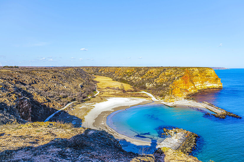 Einer der längsten Strände Bulgariens befindet sich bei Obzor. Der goldgelbe Sand bietet auf über acht Kilometern genug Platz für diejenigen, die am liebsten den ganzen Tag bleiben und sich die Sonne auf die Haut scheinen lassen wollen. Wenn ihr zwischendurch eine Abkühlung braucht, geht ihr einfach schnell im Meer schwimmen. Und wie wäre es mit surfen oder schnorcheln? Auch das könnt ihr am Strand von Obozor ausprobieren. Besonders rasant wird es bei einer Fahrt mit dem Jetski. Die Ausrüstung für viele Wassersportarten kann vor Ort ausgeliehen werden. An der hübschen Promenade flaniert ihr nach dem Tag am Wasser in aller Ruhe. In der Nähe gibt es Cafés und Restaurants, die euch mit den kulinarischen Köstlichkeiten verwöhnen.