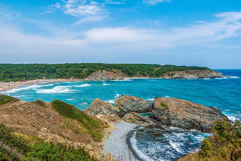 Er ist der südlichste große Strand an der bulgarischen Schwarzmeerküste. Die geschützte Bucht zwischen Sinemorets und Rezevo, der wilde Wald hinter der Küste, keine Gebäude in der Nähe zusammen mit dem unglaublich klaren Wasser und den langgestreckten felsigen Ausläufern an beiden Enden machen ihn zu einem Lieblingsstrand vieler Urlauber. Das Meer ist hier besonders klar und bietet sich demnach perfekt für Schnorchel- und Taucheinheiten an. Surfer bekommen hier beste Voraussetzungen, aber auch andere Aktivitäten wie Kanufahren könnt ihr ausprobieren. Die Vielfalt an Freizeitmöglichkeiten macht Silistar Beach zu einem wahren Paradies für Outdoor-Enthusiasten.