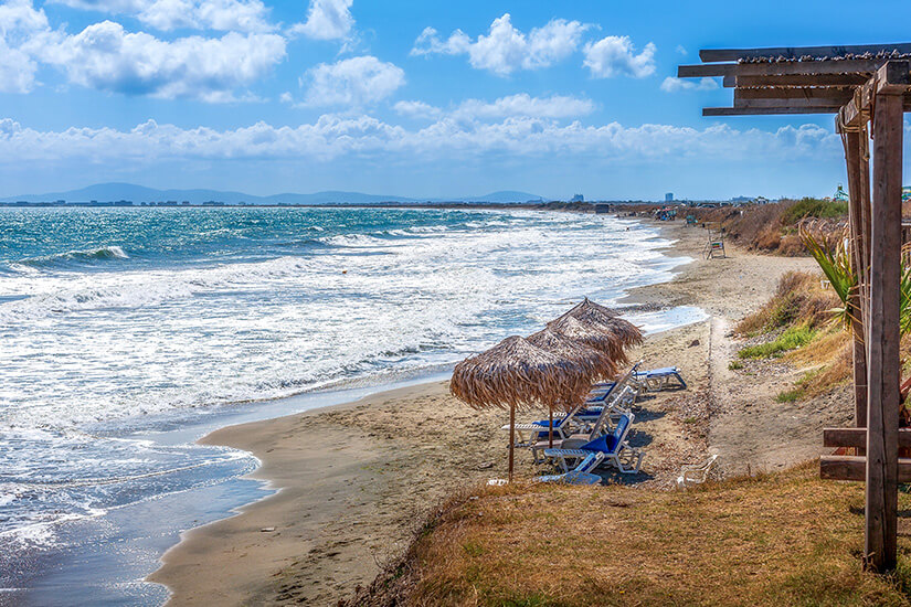 Ein wahres Prachtexemplar befindet sich bei der Stadt Sozopol im südlichen Bereich der Burgaser Bucht am Schwarzen Meer. Der Zentralstrand begeistert mit seinem golden schimmernden Sand kleine und große Urlauber. Dank der geschützten Lage und des flachen Zugangs zum Wasser ist er bei Familien mit Kindern sehr beliebt. Lasst euch auf einer Liege unter einem Sonnenschirm nieder und genießt den grandiosen Ausblick auf das kristallklare Wasser! Zum Erfrischen geht ihr eine Runde schwimmen oder fahrt mit dem Jetski. Katamaran- und Stand-up-Paddling-Fans kommen ebenfalls auf ihre Kosten. Das Equipment lässt sich leicht mitbringen, da es vor Ort einen Parkplatz gibt.