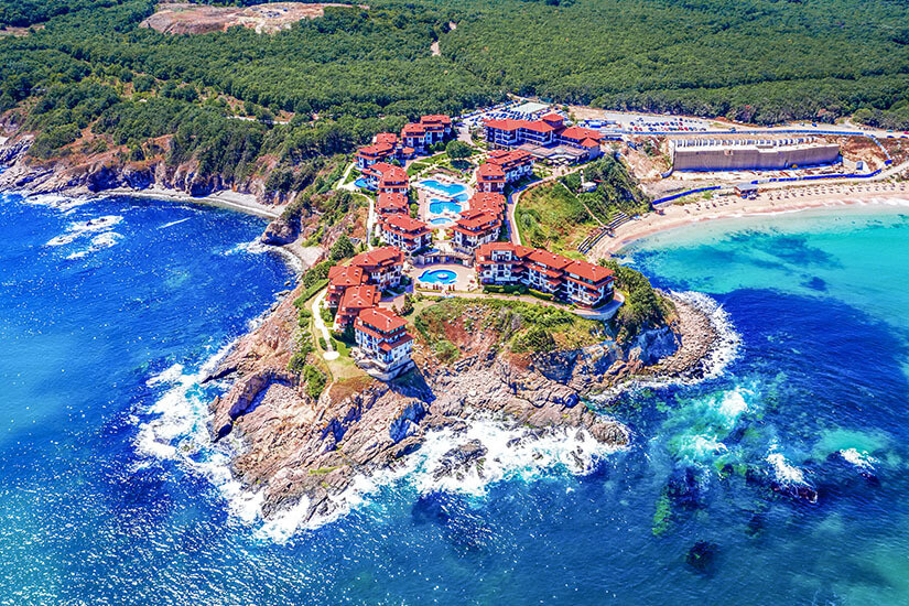 Im Urlaubsort Aheloy, nahe der Stadt Pomorie, erwartet Wassersportler ein Strandparadies, das seinesgleichen sucht. Besonders Wind- und Kitesurfer schätzen die exzellenten Windbedingungen, die hier herrschen. Das klare Wasser des Schwarzen Meeres umspült sanft den hellen Sandstrand, auf dem ihr euer Badetuch ausbreiten könnt, um die Sonne zu genießen. In Aheloy steht die Natur im Mittelpunkt. Selbst während der Hochsaison bleibt die Atmosphäre ruhig und entspannt.
