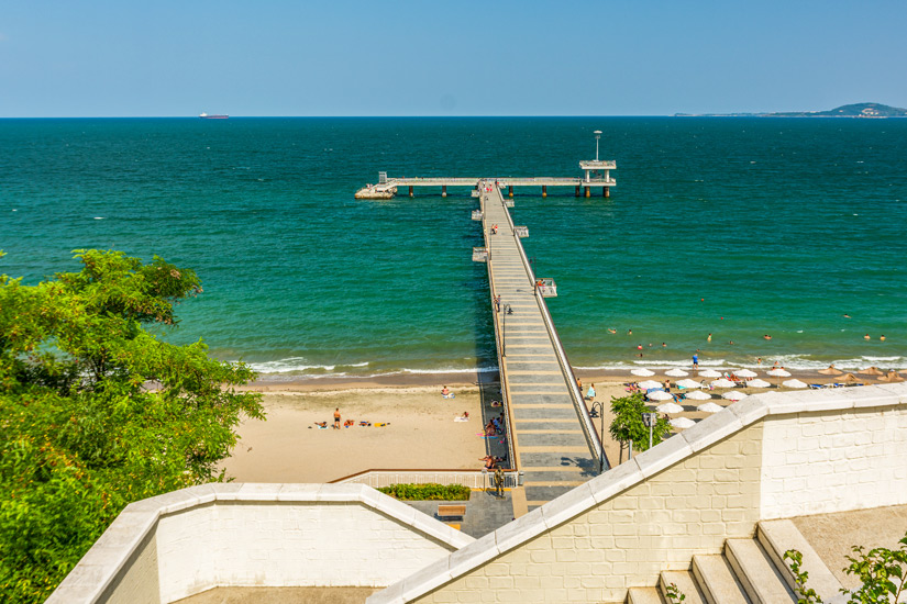 Die Seebrücke wurde im Jahr 1936 erbaut und ragt weit ins Meer hinaus. Sie befindet sich am Meeresgarten und geht auf die Pläne des deutsch-bulgarischen Architekten Dimitar Fingow zurück. Damals war ihre Eröffnung eines der wichtigsten Ereignisse im Königreich Bulgarien – mittlerweile ist die Seebrücke eher eine Attraktion für Einheimische und Besucher. Am Ende der Brücke erwartet euch eine Aussichtsplattform sowie ein Kai für kleinere Boote. An Land führt eine Steintreppe direkt zum Casino hinauf oder ihr schlendert den Strandbereich entlang und genießt den Ausblick über das Schwarze Meer.