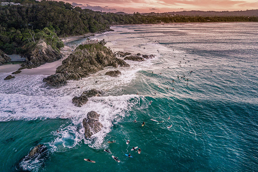 Die Surf- und Schnorchelhochburg Byron Bay liegt zwischen Brisbane und Sydney an Australiens Ostküste. Mit vielen Stränden und Highlights rund um den Wassersport ist der Ort das perfekte Gegenstück zu einem Aufenthalt im Outback Australiens.