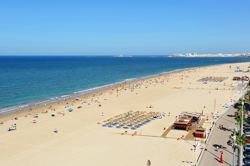 Die Strände von Cádiz ermöglichen eine kleine Abkühlung nach dem Sightseeing oder verwöhnen euch von Anfang an in einem Urlaub mit Badefokus. Weicher und meist weißer oder nahezu golden funkelnder Sand gehören ebenso zu dem klassischen Strandbild von Cádiz wie eine Promenade oder flach abfallende Wege. Da ist wenig überraschend, dass einigen Stränden regelmäßig die Blaue Flagge verliehen wird.
