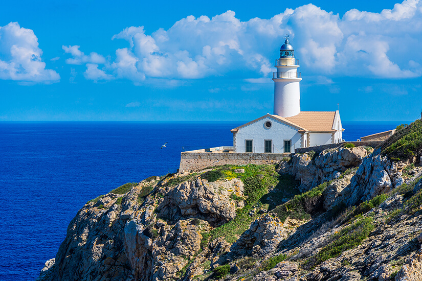 Am östlichsten Punkt Mallorcas gelegen, bietet euch der Leuchtturm von Capdepera einen der atemberaubendsten Ausblicke auf das Mittelmeer. Der Weg dorthin schlängelt sich durch eine mediterrane Landschaft mit wilden Kräutern, schroffen Felsen und Zypressen. Die ruhige Umgebung und die klare Sicht bis zur Nachbarinsel Menorca machen diesen Ort zu einem perfekten Ziel für Fotografen wie auch Naturliebhabern.