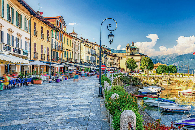 Die Uferpromenade erstreckt sich entlang des Lago Maggiore und bietet traumhafte Ausblicke auf die gegenüberliegenden Berge. Die vielen Bars, Restaurants und Cafés laden zum Verweilen ein. Am Sonntag findet ein beliebter Markt statt – perfekt, um lokale Spezialitäten zu probieren oder handgefertigte italienische Souvenirs zu entdecken.