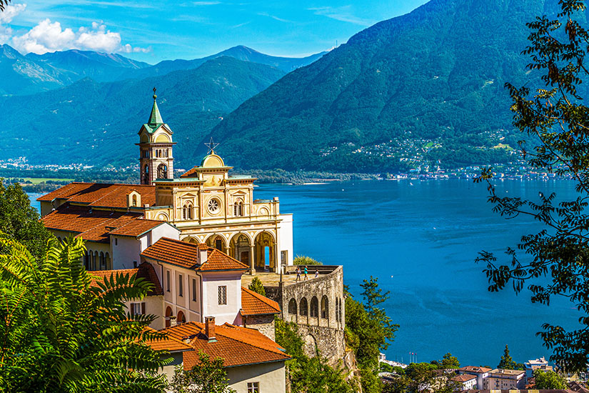 Die Innenausstattung mit meisterhaften Bildern, Fresken, Stuckarbeiten und mehrfarbigem Marmor ist beeindruckend. Auch wer nicht religiös ist, wird von der Atmosphäre und dem kunsthistorischen Wert dieser Kirche begeistert sein. Das Santuario liegt direkt am See – ein wunderbarer Ort für Ruhe und Besinnung mit herrlichem Ausblick.