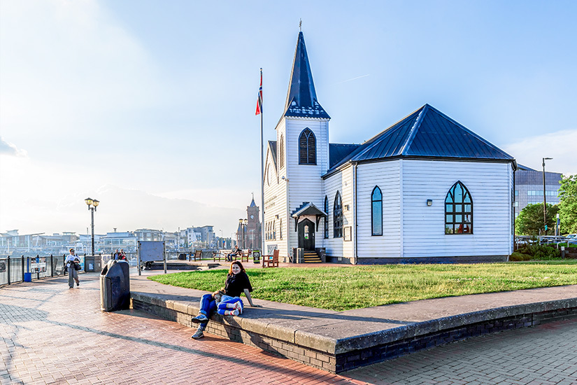 Die Bucht ist zugleich das lebhafte Hafenviertel mit Bars und Clubs und zieht die unterschiedlichsten Menschen an. Daher erwarten euch eine Fülle an möglichen Aktivitäten. Ihr könnt nahe der Anlegedocks spazieren und die Meeresbrise im Gesicht spüren. Auf diesem Spaziergang lohnt sich der kurze Weg zur Norwegischen Kirche, denn hier genießt ihr einen schönen Blick über die Bucht. Auch das 1916 errichtete Holzgebäude selbst ist in seiner skandinavischen Schlichtheit einen Besuch wert und begrüßt euch im Inneren mit einem Café sowie kleinen Ausstellungen.