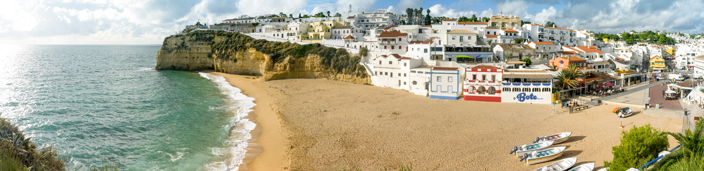 Die Geschichte von Carvoeiro, dem „Ort zwischen den Felsen“, reicht bis ins mittlere 16. Jahrhundert zurück. Die damals sehr abgeschiedene Örtlichkeit entwickelte sich erst langsam zu einem Urlaubsort, als sich die ersten Portugiesen zwischen dem Ersten und Zweiten Weltkrieg hier ansiedelten und kleine Ferienhäuser bauten. Heute gilt Carvoeiro offiziell als Kleinstadt, die Urlaubsgäste mit dem klassischen Charme Portugals verwöhnt. Dazu gesellen sich, wohl dosiert und passend, moderne Einkehrmöglichkeiten sowie Hotels, die euch keinen Komfort im Urlaub vermissen lassen. Wer ist bereit für die besonders schöne Algarve?