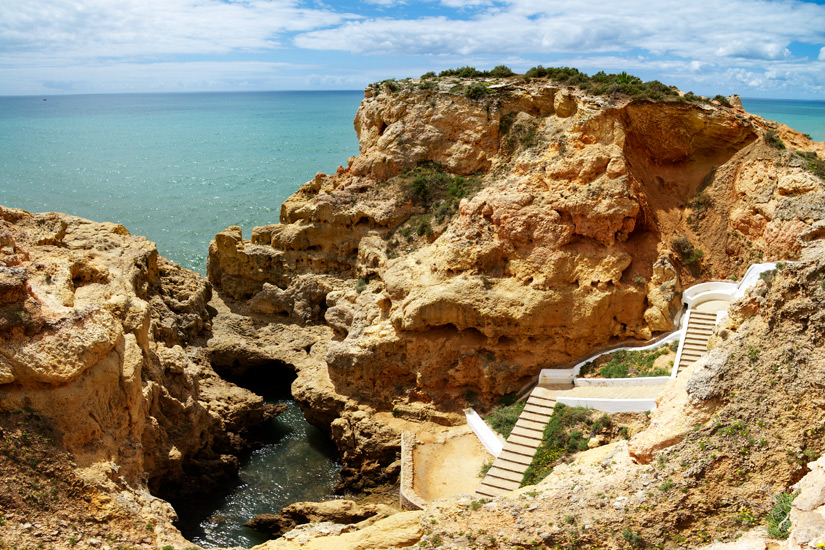 Generell begeistert die Algarve mit ihrer schroffen Küste und interessanten Felsformationen. Ein Highlight in der Nähe von Carvoeiro ist der Felsen Algar Seco. Er liegt rund einen Kilometer vom Ortskern entfernt und zieht zahlreiche Besucher aus der Algarve und ganz Portugal an. Die aus Muschelkalk bestehende Felsformation wurde durch Wind und Meereswellen geformt und gilt als eines der berühmtesten Fotomotive der Region. Bei Sonnenuntergang erscheint der teilweise bizarr anmutende Felsen in einem besonders mystischen und romantischen Licht.