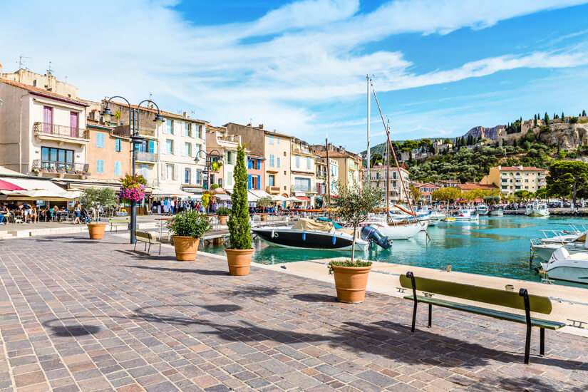 Dank der idyllischen Lage in einer Bucht ist Cassis bei Urlaubern sehr beliebt. Ein Ausflug in die Natur führt euch in den berühmten Nationalpark Calanques mit seinen idyllischen Buchten, die zum Verweilen einladen. Auf einer kulinarischen Entdeckungsreise besucht ihr regionale Weingüter und probiert den französischen Fruchtlikör Cassis. Wenn ihr die Ortschaft in Ruhe erkundet habt, könnt ihr spannende Ausflüge in die Umgebung unternehmen. Die Stadt Marseille ist beispielsweise nur etwa 30 Kilometer entfernt und Toulon erreicht ihr in rund 42 Kilometern.