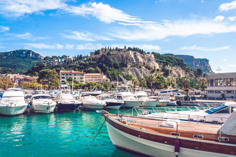 Zwischen feinen Sandstränden, umgeben von Kalkfelsen und üppigen Pinienwäldern erlebt ihr einen traumhaften Urlaub in Cassis an der französischen Mittelmeerküste. Ein majestätisches Château und der Nationalpark Calanques laden zum Entdecken ein und zahlreiche Sehenswürdigkeiten sorgen für eine kulturelle Komponente.