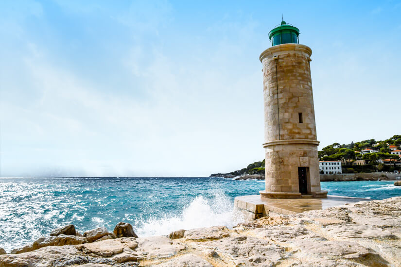 Eine echte Augenweide ist dieser imposante Leuchtturm. Mit seinem hellen Mauerwerk und dem markanten grünen Aufbau fügt er sich harmonisch in die Umgebung ein. Nach einer Beschädigung im Jahr 1944 wurde er von den einheimischen Arbeitern des regionalen Steinbruchs wieder repariert. Er thront am Eingang des Hafens und überwacht somit quasi alle ein- und auslaufenden Schiffe. Mit Sicherheit ein schönes Fotomotiv, das euch an euren Urlaub in Cassis erinnert.