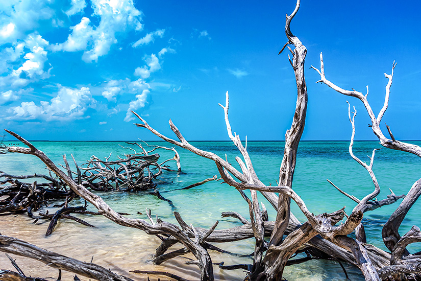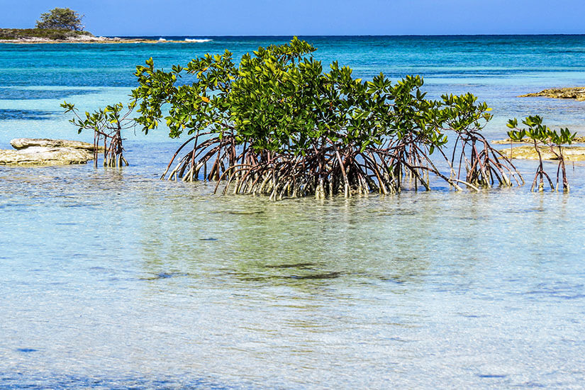 Landschaften, wie man sie sonst nur vom heimischen Bildschirmschoner kennt: Natürlich beginnen wir gleich mit den karibischen Traumstränden der Region. Denn von denen gibt es auf Cayo Santa Maria jede Menge. Weißer Puderzuckersand, türkisfarbenes Wasser und ein vorgelagertes Korallenriff bestimmen die Kulisse. Hier und da ragen kleine Felsklippen und Mangroven aus dem Wasser hervor und geben der Szenerie eine abwechslungsreiche Facette.