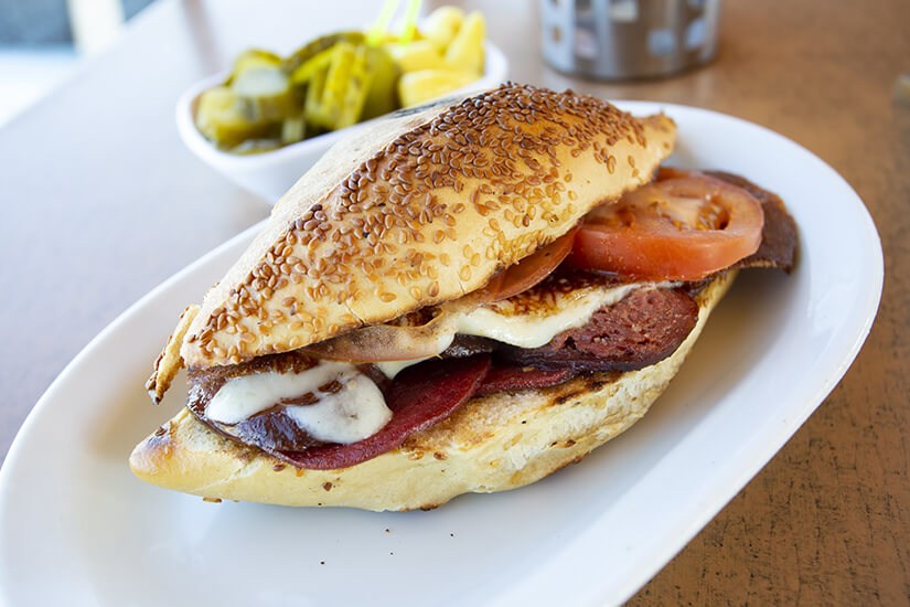 Wollt ihr traditionell türkisch essen gehen, solltet ihr definitiv mit leerem Magen ins Restaurant gehen, denn hier wird reichlich aufgetischt. Als Vorspeise kommt die kalte Meze auf den Tisch – eine riesige Platte mit Meeresfrüchten, Obst, Gemüse und vielen weiteren Kleinigkeiten. Garniert mit Dips und Kräutern könnt ihr euer frisches Weißbrot nun bunt belegen. Als Hauptgang könnt ihr beispielsweise einen fangfrischen Fisch bestellen, wie den Lippfisch (Levrek), der für die Region Çeşme typisch ist. Esst ihr unterwegs, solltet ihr das Kumru Sandwich, bestellen welches reichlich mit Käse, Wurst und Tomaten belegt wird. Dieses gilt als Gericht des Ortes.