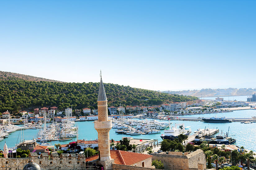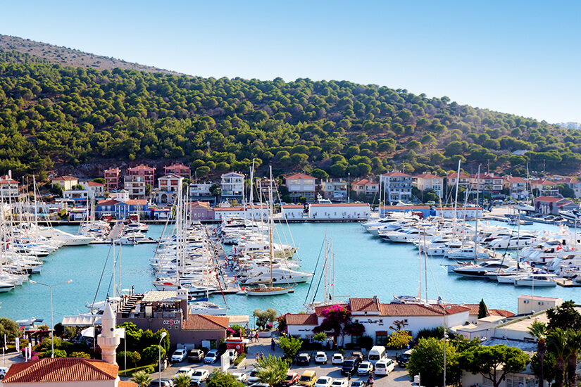 Restaurants, Cafés und Bars laden zum Verweilen ein, während ihr den Blick über die Küste der türkischen Ägäis schweifen lasst und euren Urlaub in vollen Zügen genießen könnt. Anschließend solltet ihr an der Promenade entlang flanieren und in kleinen Boutiquen und Verkaufsständen nach tollen Souvenirs für eure Liebsten Ausschau halten. Am Abend könnt ihr euch ins bunte Treiben stürzen und euch einen Drink am Hafenbecken gönnen, während ihr den wundervollen Sonnenuntergang beobachtet. Die romantische Marina ist außerdem der ideale Ausgangspunkt für weitere Touren entlang der Ägäis oder für Ausflüge auf die griechische Insel Chios oder die Insel Lesbos.