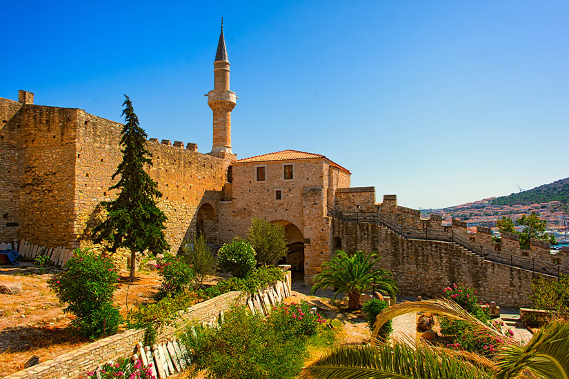 Nehmt ihr den kurzen Spaziergang zur Burg im Zentrum der Stadt auf euch, werdet ihr nicht nur mit typisch osmanischer Architektur und historischem Flair beeindruckt. Auch der Ausblick auf die Marina von Çeşme ist atemberaubend. Nehmt euch einen Moment Zeit und genießt das Panorama über die Dächer der Stadt. Bei guter Sicht könnt ihr von hier oben sogar bis nach Griechenland schauen.