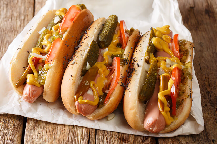 Tatsächlich geht es in Chicago trotz multikultureller Vielfalt kulinarisch ganz typisch amerikanisch zu. Pizza und Hot Dogs gehören hier, nämlich zu den kulinarischen Spezialitäten. Die Pizza wird dabei im „Chicago Style“ serviert, welche durch den besonders dicken Boden hervorsticht. Die Deep Dish Pizza wird dafür nicht etwa im Ofen, sondern in einer Pfanne mit hohem Rand gebacken. Anschließend wird der Boden als Schüssel genutzt und mit Käse sowie anderen Zutaten, wie Wurst, Tomaten und noch mehr Käse befüllt. Diese Köstlichkeit solltet ihr euch bei eurem Chicago-Aufenthalt auf keinen Fall entgehen lassen.