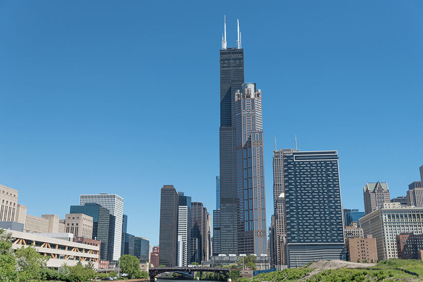 Der Willis Tower ist mit seinen 442 Metern Höhe neben dem World One Trade Center in New York der zweithöchste Wolkenkratzer in den Vereinigten Staaten und das höchste Gebäude in der westlichen Hemisphäre. Ihr werdet staunen, wie schnell ihr trotzdem mit den Highspeed-Fahrstühlen an der Turmspitze angekommen seid. Neben dem atemberaubenden Ausblick über Chicago und den Lake Michigan, kommen hier oben auch Adrenalinjunkies auf ihre Kosten. Von den gläsernen Balkonen „The Ledge“ im 103. Stockwerk habt ihr die einmalige Möglichkeit, 412 Meter unter euch in die Tiefe zu schauen.