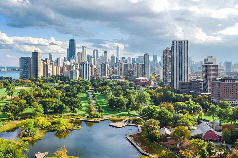 Chicago liegt im Bundesstaat Illinois im Mittleren Westen der USA. Einst ein ehemaliger Handelsposten mitten in der Wildnis, ist Chicago heute eine dynamische Metropole. Mit ihren 2,8 Millionen Einwohnern ist sie die drittgrößte in den gesamten Vereinigten Staaten. Gegründet wurde die Stadt im Jahr 1833 und gehörte schon damals dank ihrer zentralen Lage als Verkehrsknotenpunkt zu den wichtigsten Wirtschaftsstandorten und Handelsstädten der USA. Noch heute gehört der Bahnhof Chicagos zu den größten der Welt.