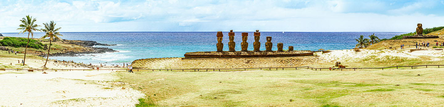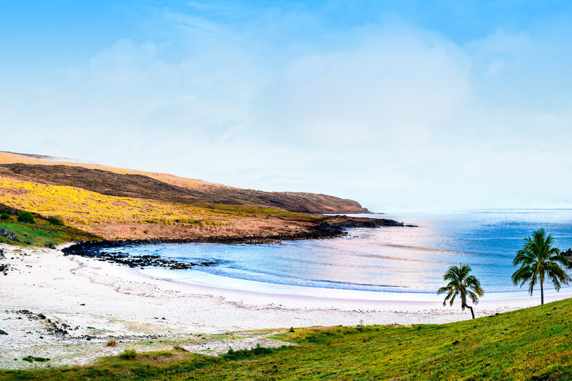 Bei einem Besuch der Playa Anakena werdet ihr Karibikfeeling erleben, denn der Hauptstrand der Osterinseln wirkt wie aus einem Traum. Die beeindruckenden Eilande liegen im Pazifik – 3.500 Kilometer vor der Küste Chiles. Das typische Bild eines paradiesischen Strandes mit feinen, weißen Korallensand, türkisfarbenem Meer und sanften Wellen erwartet euch hier. Palmen spenden wohltuenden Schatten und machen das Strandparadies perfekt – eine Oase der Ruhe. An diesem Ufer könnt ihr das ganze Jahr über schwimmen, da die Wassertemperatur durchschnittlich bei 20 Grad Celsius liegt. Die Playa Anakena ist zudem dafür bekannt, recht unberührt und abseits der Pfade zu liegen. Insbesondere in den frühen Morgenstunden, wenn es noch menschenleer ist, findet ihr hier die langersehnte Pause. Genießt die Ruhe und Stille ganz für euch allein!