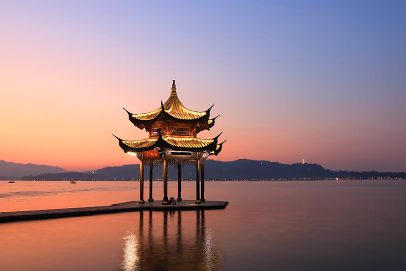 Mit dem Hochgeschwindigkeitszug nur noch eine Stunde von Shanghai entfernt, erreicht ihr die, laut Marco Polo „schönste und prächtigste Stadt der Welt“, Hangzhou. Die ebenfalls südlich des Yangtse-Deltas gelegene Provinzhauptstadt gehört zu einer der sieben alten Hauptstädte und verfügt über eine 2.500 Jahre alte Geschichte. Reich an kulturellem Erbe und bezaubernder Naturkulisse, geht es in Hangzhou vergleichsweise gemächlich zu.