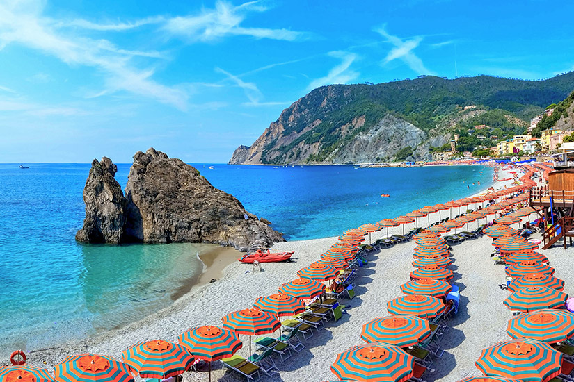 Strandtage sind an der ligurischen Küste ebenfalls möglich. Monterosso al Mare darf den einzigen Sandstrand unter den Dörfern sein Eigen nennen, während andere Orte wie Vernazza Kiesel- und Steinchenstrände aufweisen. Ein Sprung ins Meer ist aber, wenn das Wetter passt, trotzdem kein Problem. Alternativ könnt ihr Sonnenbaden oder Spaziergänge machen. Lediglich Surfer schauen in die Röhre, da die Küste ziemlich windstill ist. Für Badeurlauber ist gerade das ein großer Vorteil!