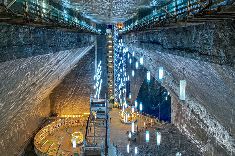 Mehrere Jahrhunderte lang wurde in der Mine von Turda Salz gefördert. In der Vergangenheit auch als Luftschutzbunker und dann als Käselager genutzt, dient es seit dem Jahr 2010 als Freizeitpark 120 Meter unter der Erde. Bowling, Riesenrad oder Minigolf sind in dieser Umgebung eine skurrile Besonderheit. Darüber hinaus erfahrt ihr Interessantes über ehemalige Abbauwerkzeuge und die Geschichte des Salzbergwerkes.