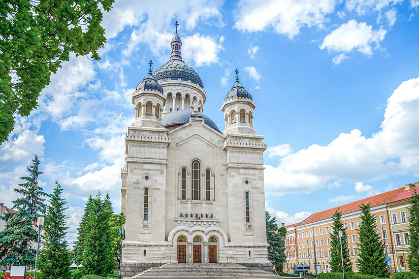 Eines der wichtigsten religiösen Gebäude in Cluj-Napoca ist die orthodoxe Kathedrale im neobyzantinischen Stil aus den 1920er-Jahren. Das historische Denkmal ist außerdem die dritthöchste Kathedrale des Landes und ein Werk der bekannten Architekten Constantin Pomponiu und Georges Cristinel. Gewidmet ist der Sakralbau der Himmelfahrt der Muttergottes. Im Inneren der Kirche werdet ihr künstlerische Mosaike sehen, die in Rumänien eher eine Seltenheit sind.