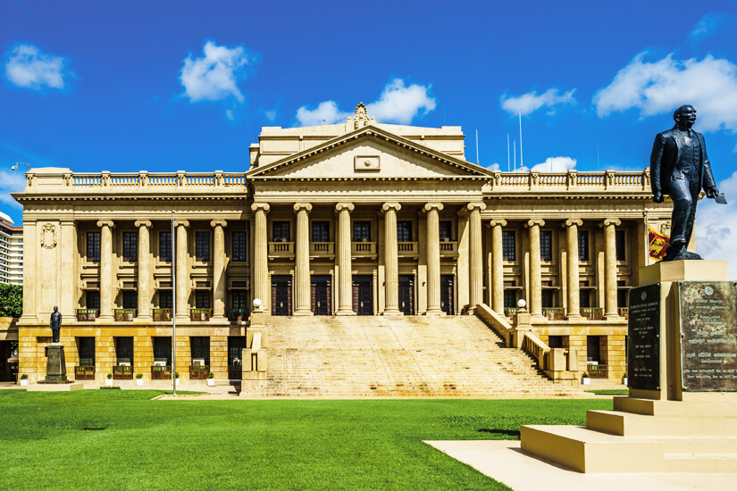 Das alte Parlament wurde im viktorianischen Stil gestaltet und erinnert an die Briten, die es einst in Colombo errichteten. Heute ist in dem imposanten Gebäude das Präsidialamt untergebracht. Der heutige Sitz der Regierung Sri Lankas befindet sich allerdings im neuen Parlament.