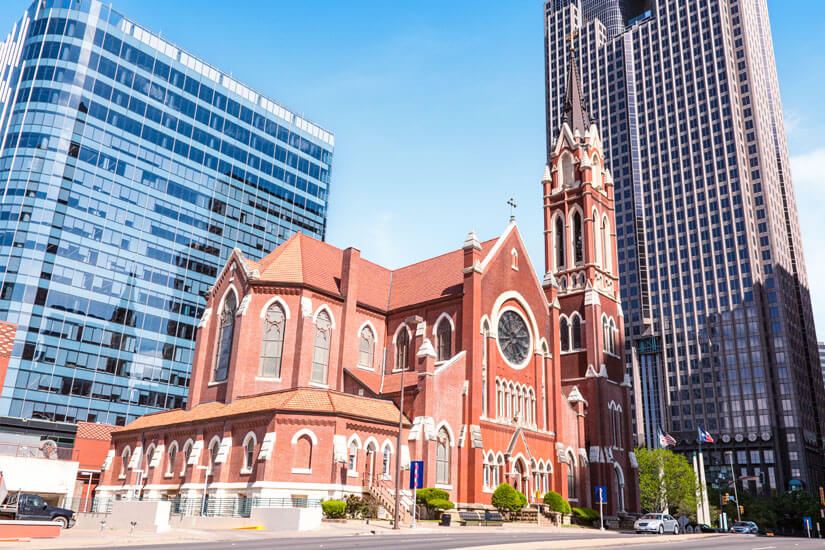 Ganz in der Nähe befindet sich die älteste Kirche von Dallas. Die Kathedrale Santuario De Guadalupe entstand im Jahr 1869 und befand sich ursprünglich am heutigen Standort des zentralen Postamts. Am 26. Oktober 1902 wurde das Gotteshaus von Bischof Edward Dunne offiziell als Herz-Jesu-Kathedrale eingeweiht. Mit ihrer Umbenennung von Sacred Heart Cathedral in Santuario De Guadalupe wurde sie zu einer von zwei Kathedralen in den Vereinigten Staaten zu Ehren Unserer Lieben Frau von Guadalupe, der Schutzpatronin Amerikas.