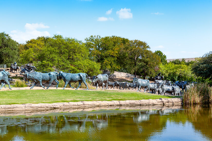 Der Pioneer Plaza stellt den Mittelpunkt mit historischer Bedeutung für die Innenstadt dar und erinnert an die Anfänge von Dallas. Einheimische Pflanzen, ein sanft fließender Bach und eine imposante Bronze-Nachbildung von Longhorn-Ochsen, die von drei Cowboys zu Pferd getrieben werden, würdigen die Routen, auf denen die Siedler nach Dallas gelangten.